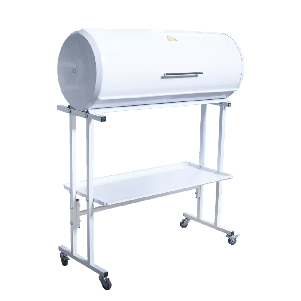 Модель Мобіл оснащена пересувними опорами для зручного транспортування, проте за потреби може бути виготовлена у настільному виконанні. У робочій зоні легко розміщуються лотки чи касети різної форми, що забезпечує ефективну організацію робочого простору.