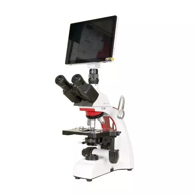 Цей мікроскоп має змінні окуляри та можливість збільшення від 40 до 1600 крат. Модель IQ LED доповнена 5 Мп цифровою камерою і РК дисплеєм з діагоналлю 9,7". Такий пристрій досконально зможе вам показати чітке зображення мікроорганізму як на екрані, так і через окуляри.